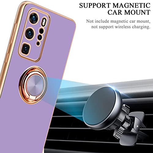 Cadorabo Custodia compatibile con Huawei P40 PRO in Glossy Viola Chiaro - Oro con anello - Coperchio in silicone TPU flessibile, con protezione per la fotocamera e supporto magnetico per l'auto