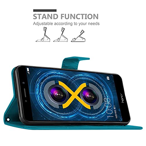 Cadorabo Custodia compatibile con Huawei Mate 9 Lite / GR5 2017 / Honor 6X in Blu FLORAL - Custodia protettiva con chiusura magnetica, funzione di supporto, slot per carte di credito