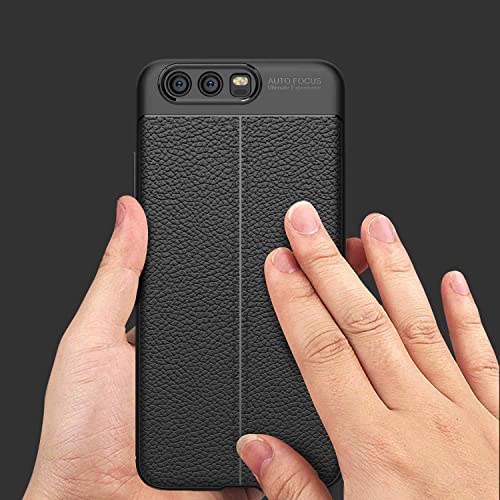 Cadorabo Custodia compatibile con Huawei P10 in Nero Profondo - Custodia protettiva in silicone TPU con applicazione di finta pelle nobile - Ultra Slim Back Cover Case