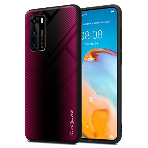 Cadorabo Custodia Compatibile con Huawei P40 - Ottica a Strisce in Cremisi Rosa - Coperchio Protettivo in Silicone TPU e Retro in Vetro temperato