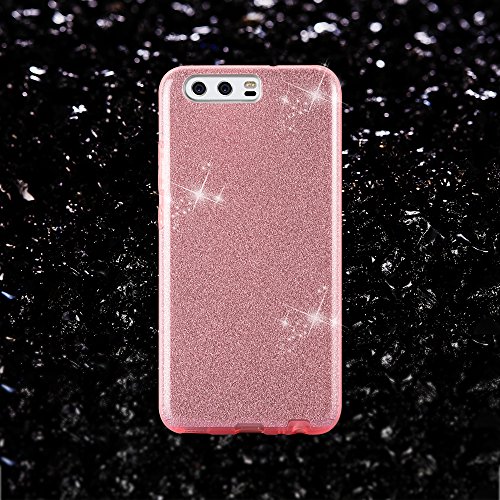 Cadorabo Custodia compatibile con Huawei P10 Custodia TPU Silicone Case Glitter Design Anti Antiscivolo Slim Graffio Morbida Gomma con Protezione completa Case Cover per Huawei P10 Rosa