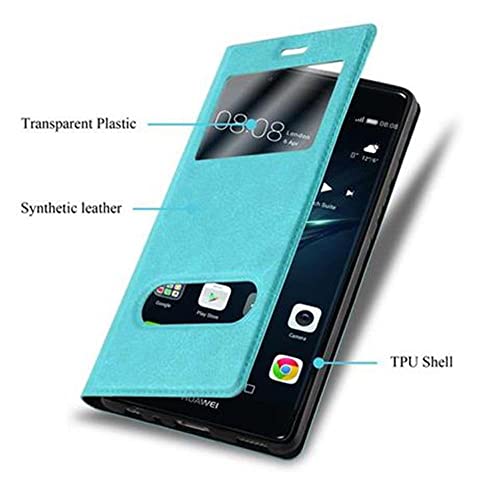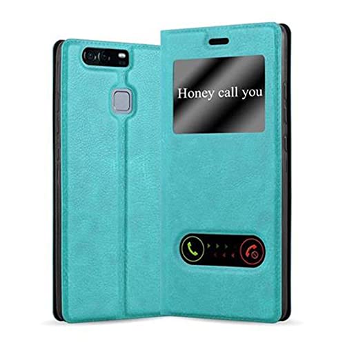 Cadorabo Custodia compatibile con Huawei P9 in verde menta turchese - Custodia con chiusura magnetica, funzione leggio e 2 finestre di visualizzazione
