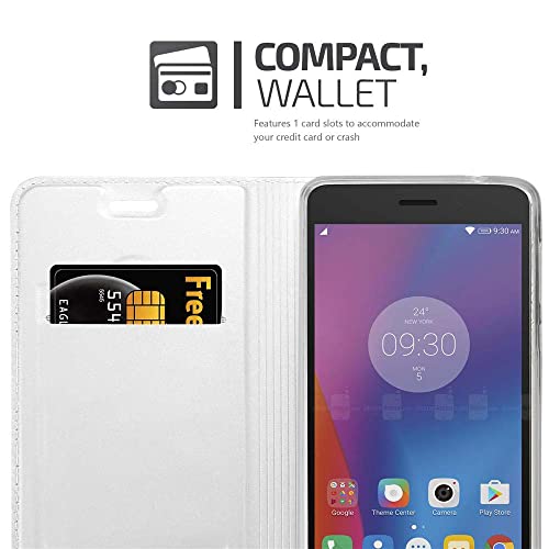 Cadorabo Custodia compatibile con Lenovo K6 / K6 Power in Classy Silver - Custodia protettiva con chiusura magnetica, funzione leggio e scomparto per carte di credito