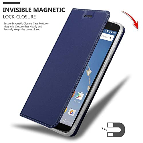 Cadorabo Custodia compatibile con Motorola Google Nexus 6 in Classy Blu scuro - Custodia con chiusura magnetica, funzione leggio e scomparto per carte di credito