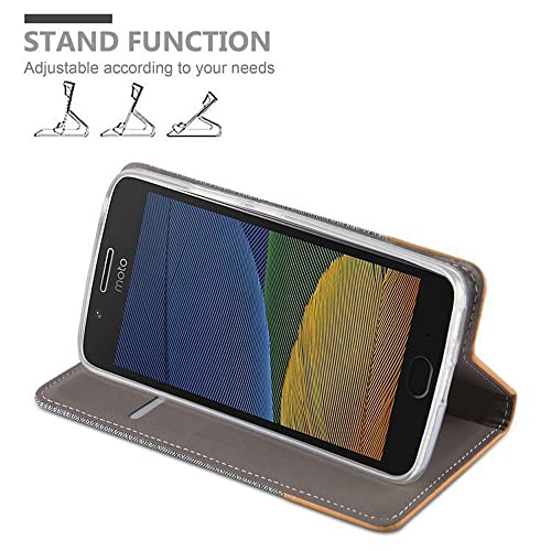 Cadorabo Custodia compatibile con Motorola Moto G5 Plus in grigio chiaro marrone - Custodia con chiusura magnetica, funzione leggio e scomparto per carte di credito
