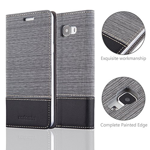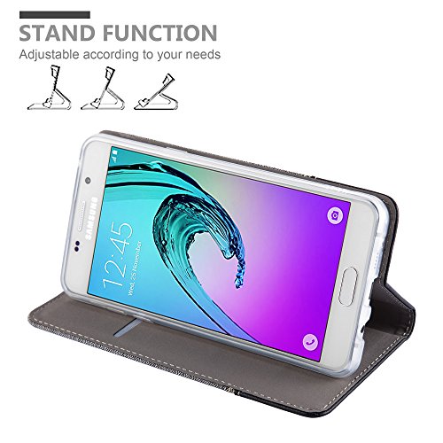 Cadorabo Custodia compatibile con Samsung Galaxy A5 2016 in grigio nero - Custodia con chiusura magnetica, funzione leggio e scomparto per carte di credito