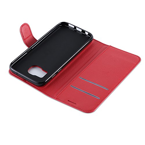 Cadorabo Custodia compatibile con Samsung Galaxy S6 Edge in rosso carminio - Custodia protettiva con chiusura magnetica, funzione leggio e scomparto per carte di credito