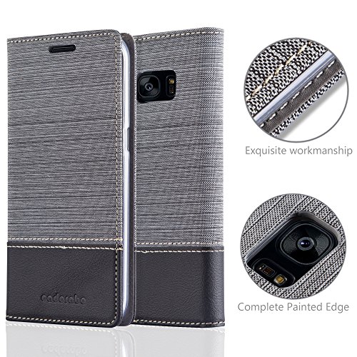 Cadorabo Custodia compatibile con Samsung Galaxy S7 Edge in grigio nero - Custodia con chiusura magnetica, funzione leggio e scomparto per carte di credito