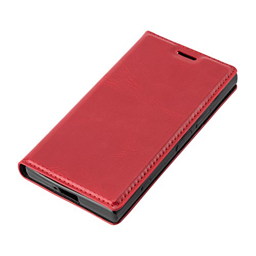Cadorabo Custodia compatibile con Sony Xperia XZ1 compatta in rosso mela - Custodia protettiva con chiusura magnetica, funzione di supporto e scomparto per carte di credito