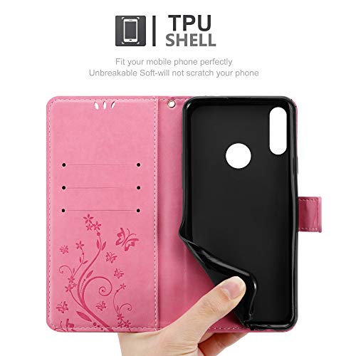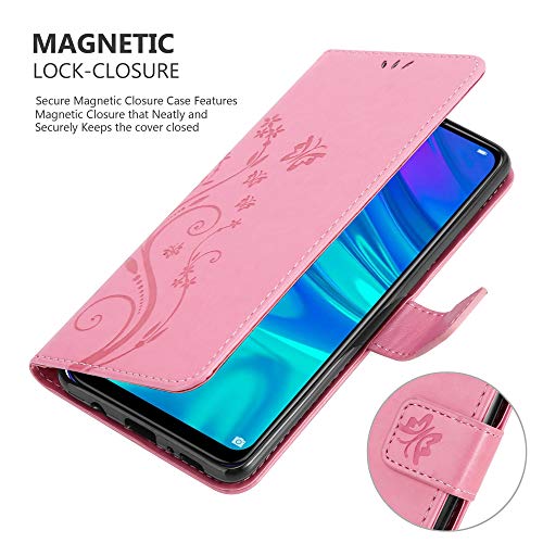 Cadorabo Custodia per Honor 10 LITE/P Smart 2019 in FLORAL ROSA - Custodia con motivo floreale con chiusura magnetica, funzione leggio e 3 scomparti per carte di credito, custodia protettiva