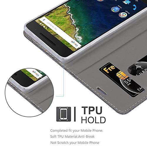 Cadorabo Custodia per Huawei Nexus 6P in grigio e nero - Custodia con chiusura magnetica, funzione leggio e scomparto per carte di credito - Custodia a libro