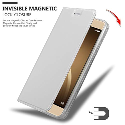 Cadorabo Custodia per Huawei P9 Plus, in argento classico, con chiusura magnetica, funzione leggio e scomparto per carte di credito