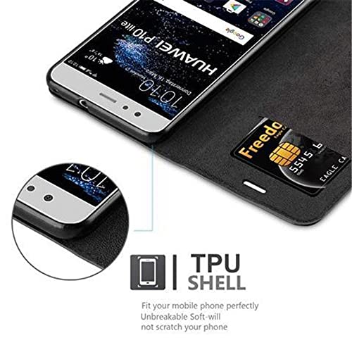 Cadorabo Custodia Libro per Huawei P10 LITE in NERO DI NOTTE - con Vani di Carte, Funzione Stand e Chiusura Magnetica - Portafoglio Cover Case Wallet Book Etui Protezione