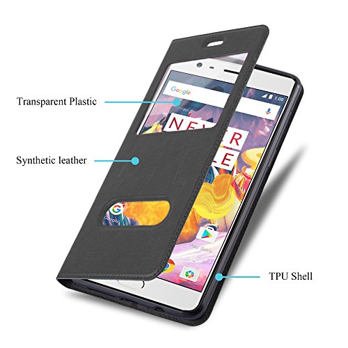 Cadorabo Custodia Libro per OnePlus 3 / 3T in Nero COMETA - con Funzione Stand e Chiusura Magnetica - Portafoglio Cover Case Wallet Book Etui Protezione