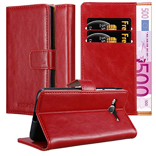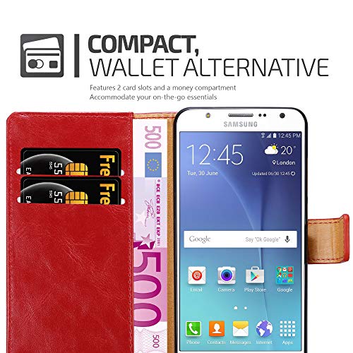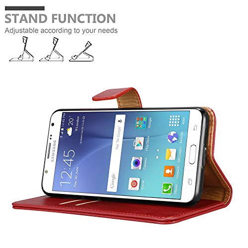 Cadorabo Custodia Libro per Samsung Galaxy J7 2015 in ROSSO VINACCIA - con Vani di Carte, Funzione Stand e Chiusura Magnetica - Portafoglio Cover Case Wallet Book Etui Protezione