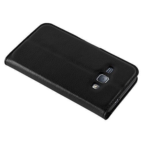 Cadorabo Custodia Libro per Samsung Galaxy J1 2016 in Nero Carbone - con Vani di Carte, Funzione Stand e Chiusura Magnetica - Portafoglio Cover Case Wallet Book Etui Protezione