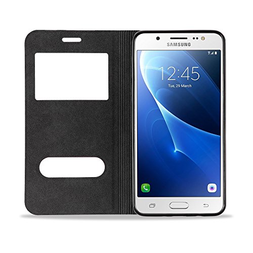 Cadorabo Custodia Libro per Samsung Galaxy J7 2016 in NERO COMETA - con Funzione Stand e Chiusura Magnetica - Portafoglio Cover Case Wallet Book Etui Protezione