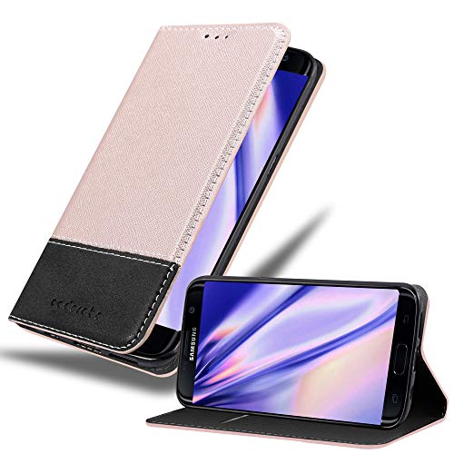 Cadorabo Custodia Libro per Samsung Galaxy S7 EDGE in ORO ROSATO NERO - con Vani di Carte, Funzione Stand e Chiusura Magnetica - Portafoglio Cover Case Wallet Book Etui Protezione