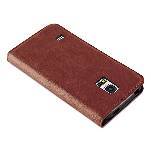 Cadorabo Custodia Libro per Samsung Galaxy S5 MINI / S5 MINI DUOS in BRUNO CAPPUCCINO - con Vani di Carte, Funzione Stand e Chiusura Magnetica - Portafoglio Cover Case Wallet Book Etui Protezione