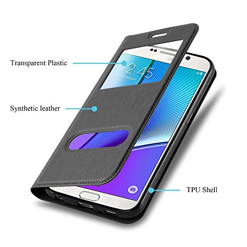 Cadorabo Custodia Libro per Samsung Galaxy NOTE 5 in NERO COMETA - con Funzione Stand e Chiusura Magnetica - Portafoglio Cover Case Wallet Book Etui Protezione