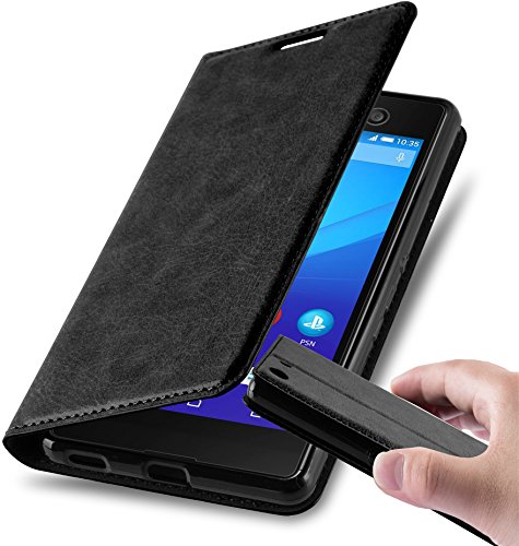 Cadorabo Custodia Libro per Sony Xperia M5 in Nero di Notte - con Vani di Carte, Funzione Stand e Chiusura Magnetica - Portafoglio Cover Case Wallet Book Etui Protezione