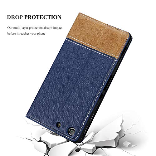 Cadorabo Custodia Libro per Sony Xperia M5 in BLU SCURO MARRONE - con Vani di Carte, Funzione Stand e Chiusura Magnetica - Portafoglio Cover Case Wallet Book Etui Protezione