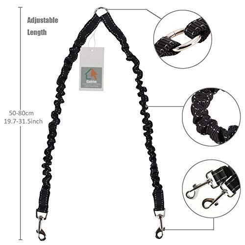Cadrim Guinzaglio in Nero Grafite,Cane Regolabile Cavo Splitter per Camminare e Traning 2 Cani