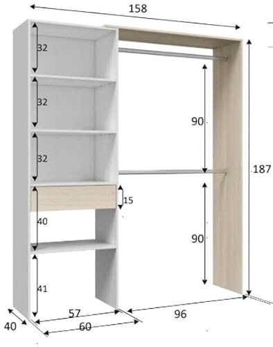 CAESAROO Cabina Armadio 158x187H cm Bianco opaco e Rovere - Rovere e Bianco