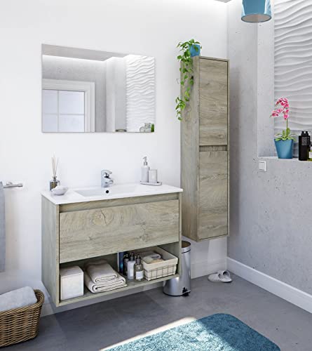 CAESAROO Colonna bagno sospesa 2 ante colore Rovere - Rovere chiaro
