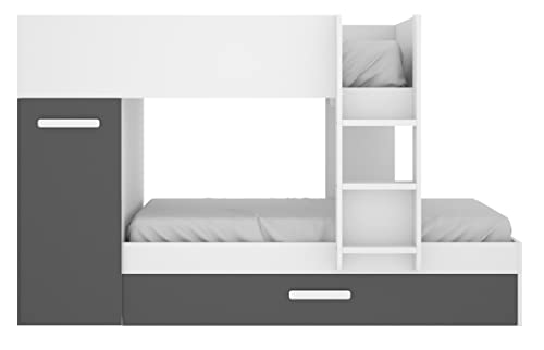 CAESAROO Letto a castello Crystal per due bambini Bianco opaco e Grafite con armadio - Bianco e grafite