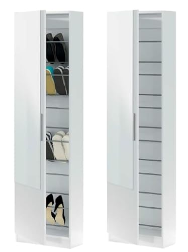 CAESAROO Scarpiera 180 cm Bianco Opaco con Anta a Specchio - Bianco