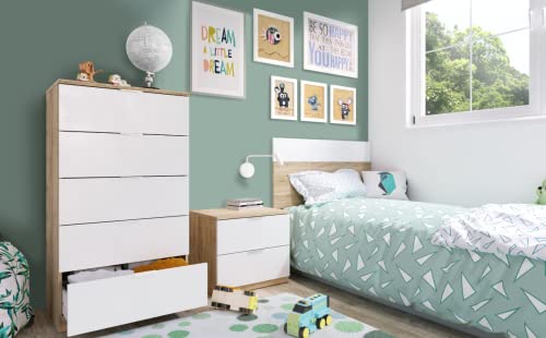 CAESAROO Settimino 110 cm Bianco opaco e Rovere canadese con 5 cassetti - Bianco artik e Rovere canadian