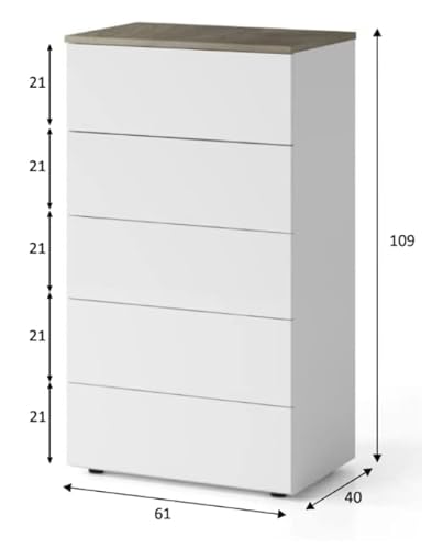 CAESAROO Settimino 109 cm Bianco opaco e Rovere con 5 cassetti - Bianco