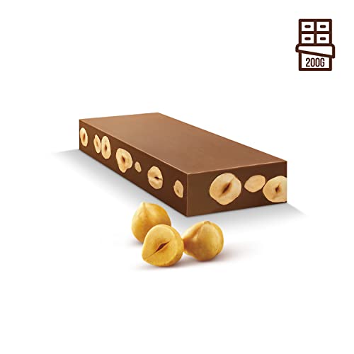 Maxi Tavoletta da 200g di cioccolato Gianduia con croccanti nocciole intere tostate 100% Italiane, per regalare un'intensa esplosione di gusto