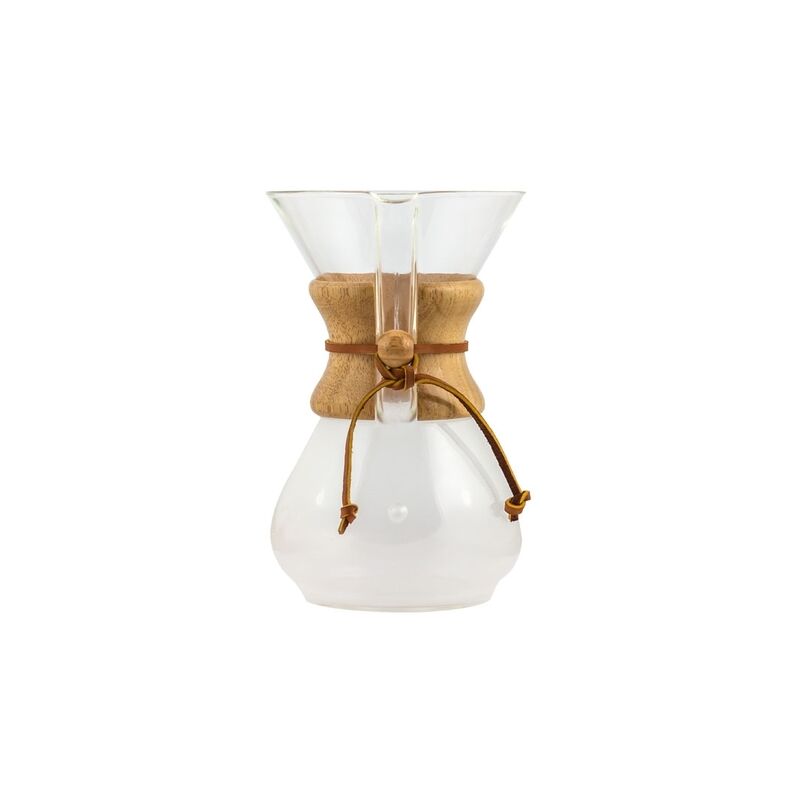 La caffettiera Chemex è stata inventata nel 1941 dal Dr. Peter Schlumbohm. Il design del dispositivo si basava sull'esperienza acquisita da questo talentuoso chimico. Il piatto a forma di clessidra in un unico pezzo è realizzato in vetro resistente al calore di alta qualità. Il collare di legno con una cinghia intorno funge da maniglia. Il vetro di cui è composto Chemex non assorbe gli odori e quindi non assorbe in alcun modo gli odori. non influisce sul gusto del caffè preparato. La produzione avviene negli Stati Uniti. Oltre alla funzionalità, Chemex si distingue per il suo straordinario design. La sua eleganza visiva può essere ammirata in mostra permanente al Museo d'Arte Moderna di New York. Inoltre, è stato selezionato dall'Illinois Institute of Technology come uno dei 100 prodotti meglio progettati dei tempi moderni. Preparare il tuo caffè preferito utilizzando la Caffettiera Chemex è estremamente semplice e richiede 4 - 6 minuti. Oltre al Chemex, servono solo filtri di carta e