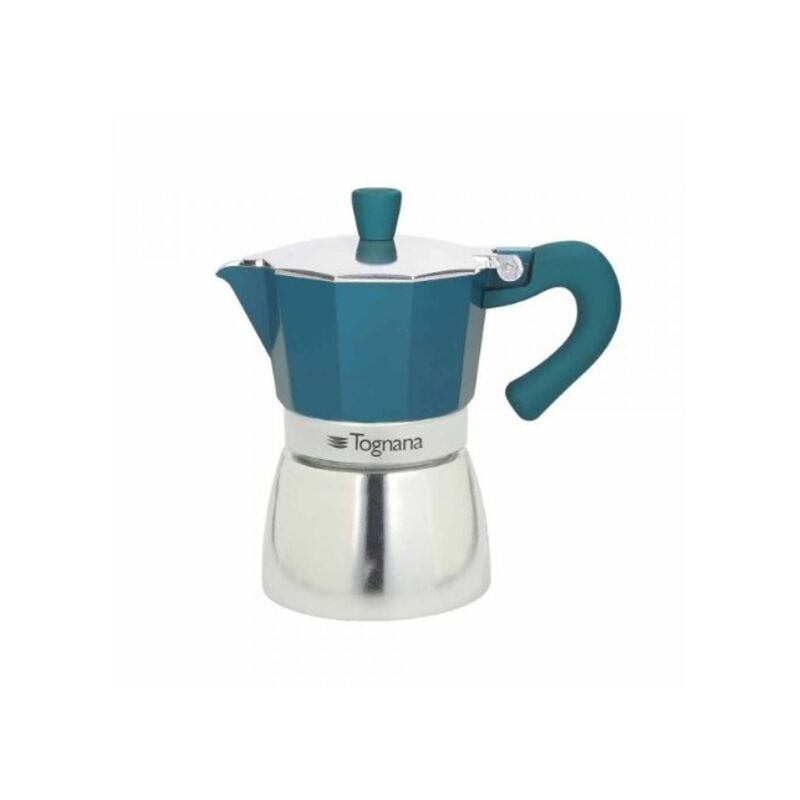 Caffettiera Coffee Star Linea Grancucina prodotta dal brand Tognana realizzata in alluminio, dalla capacità di 1 tazza, di colore ottanio. La caffettiera a 1 tazza Ottanio ha un corpo in alluminio di colore ottanio che le conferisce un'estetica molto attuale e moderna. Ideale per 1 tazza di caffè (60 cc), questa caffettiera è adatta a tutti i piani di cottura, eccetto l'induzione. Sconsigliato il lavaggio in lavastoviglie. Disponibile anche la caffettiera a 3 tazze.
