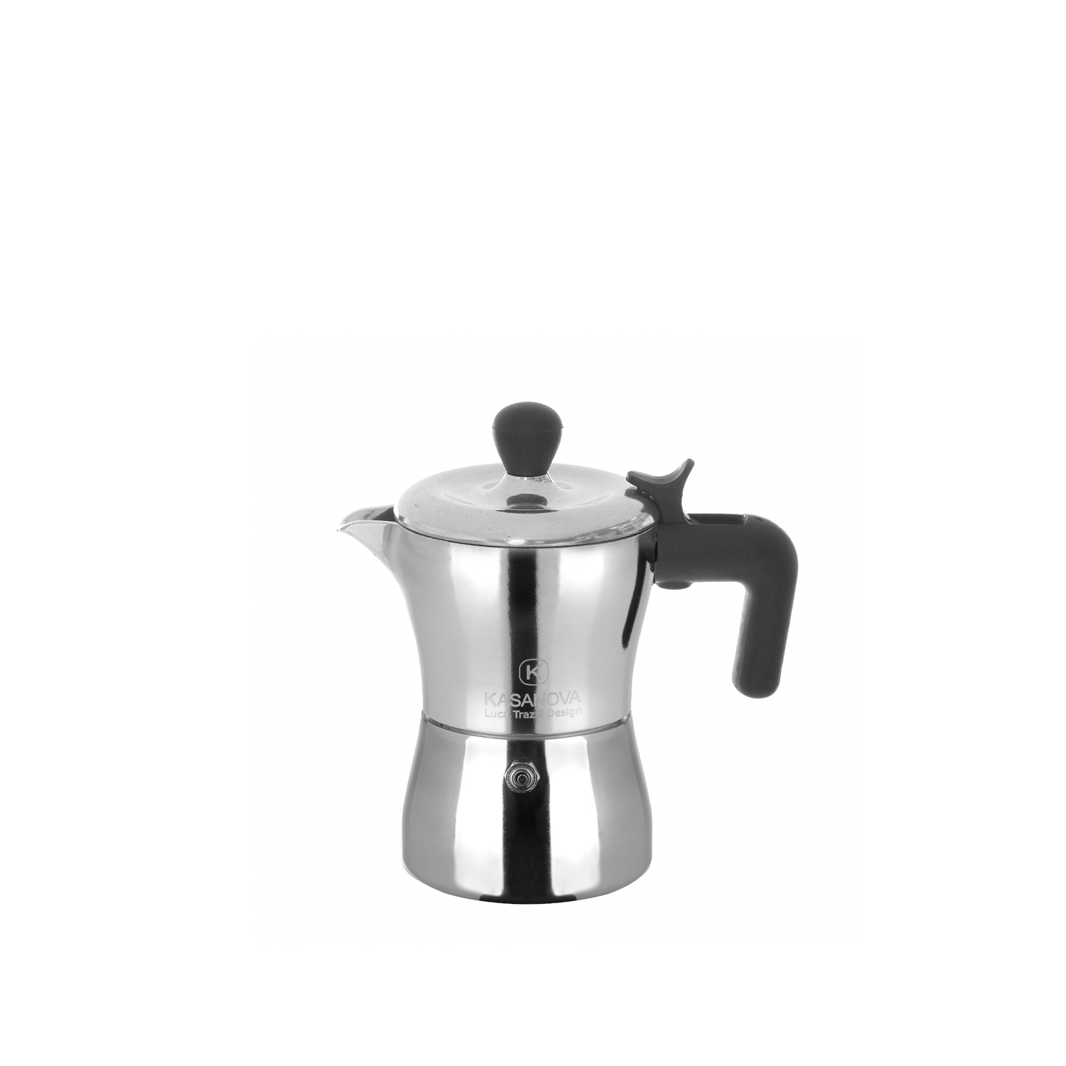 Completa la tua cucina con le forme morbide ed eleganti e il design senza tempo di K-Line, l'esclusiva linea cottura progettata dal designer Luca Trazzi per . Con il suo design moderno, sinuoso e le forme morbide, la caffettiera donerà alla tua cucina un senso di convivialità per iniziare la mattina con un buon caffè preparato come da tradizione. Il corpo in alluminio crea raffinati giochi di luce e grazie al manico e al pomolo con rivestimento soft touch, potrai afferrarla in tutta sicurezza e comodità per versare la miscela nella tazzina. La caffettiera è dotata di valvola di sicurezza italiana controllata al 100% che assicura un equilibrio di pressione ideale per preparare il vero espresso aromatico italiano. Adatta a preparare una tazza su tutti i piani cottura, ad esclusione dell'induzione. Capacità: 100 ml.
