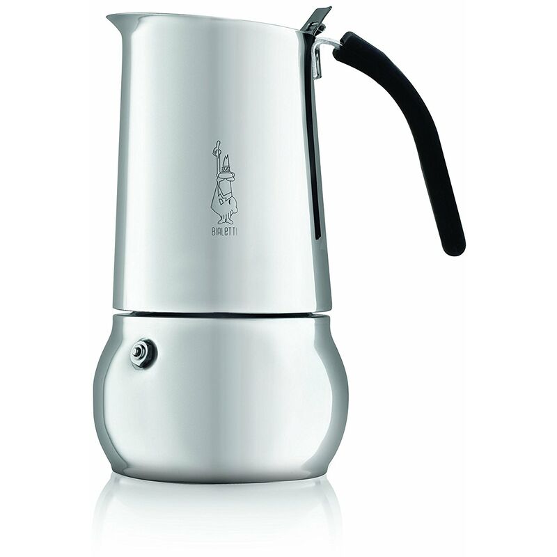 CAFFETTIERA A INDUZIONE NEW KITTY 4 TAZZEBIALETTIMOD: 4882Una brillante armonia di linee e suggestioni. Totalmente in acciaio lucido New Kitty rappresenta l?alto livello del design italiano unito ad una tecnologia di gran classe. Le linee armoniose valorizzano la purezza del materiale e la praticità del manico che nella nuova versione è realizzato completamente in materiale atermico. In pochi minuti Kitty prepara un ottimo caffè da sorseggiare caldo in ogni occasione secondo la tradizione Bialetti che da sempre esalta l?aroma e il gusto dell?espresso in caffettiera.CARATTERISICHECaffettiera in Acciaio LucidoLavabile in lavastoviglieManico rivestito in silicone antiscottaturaPomolo in acciaioEsclusiva valvola di sicurezza ispezionabile e di facile pulizia brevettata BialettiDimensione - Diametro fondo 8 5 cm ca - Altezza: 17 5 cm caLavabile in LavastovigliePiani di utilizzo: - Gas - Elettrico - Vetroceramica - Induzione EAN 8006363018067