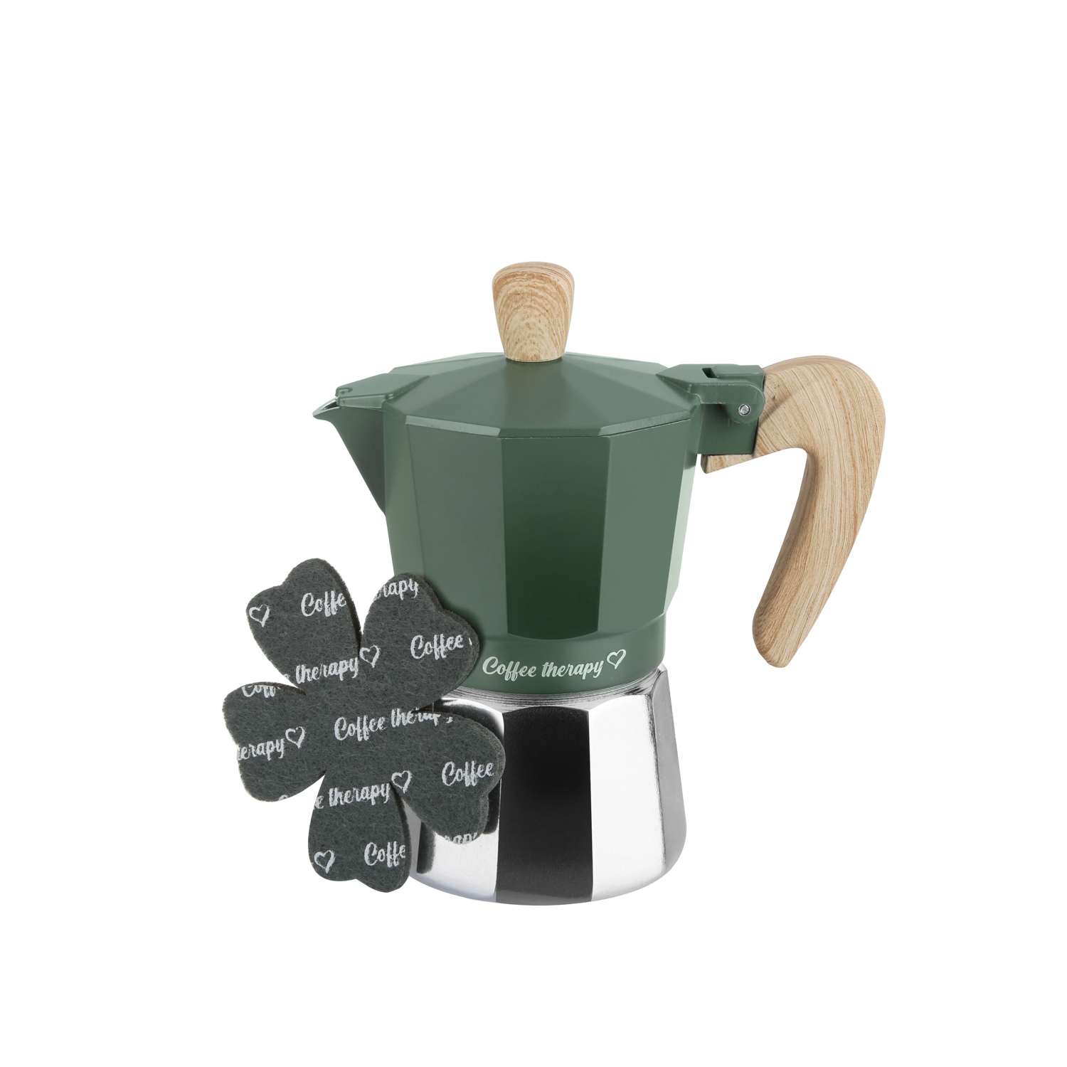 La caffettiera della linea Cooking Therapy è realizzata in alluminio riciclabile al 100% e garantisce un ottimo caffè ogni giorno. La guarnizione in silicone è inodore e insapore, oltre a essere impermeabile e indeformabile. Il manico in nylon antiscottatura, con effetto legno soft touch, agevola una presa salda quando versi il tuo espresso nella tazzina. Il modello è provvisto anche di comodo sottomoka in feltro per appoggiare la caffettiera in tavola senza rovinare le superfici a contatto. Adatta per preparare due tazze di caffè, è compatibile con tutti i piani cottura, esclusi quelli a induzione.