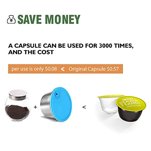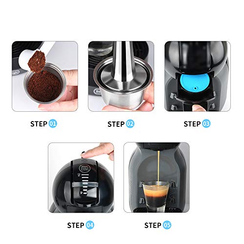 I Cafilas capsula riutilizzabile in acciaio inox per Dolce Gusto, ricaricabile capsula di ricambio per Dolce Gusto, con 1 cucchiaino da caffè e 1 spazzola per la pulizia