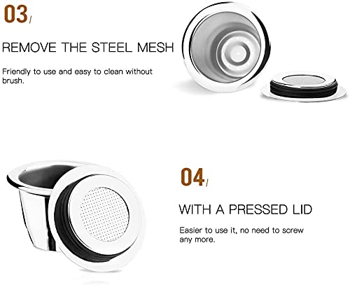 Di alta qualità:fabbricato in acciaio inossidabile, facile da pulire, utilizzo illimitato.Ecologiche, in acciaio inossidabile, capsule Nespresso che dureranno per tutta la vita.