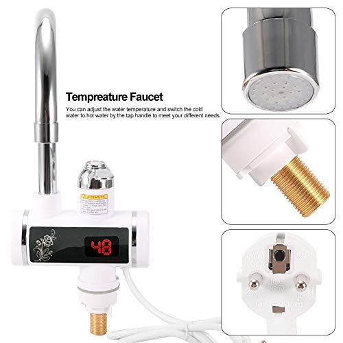 Cafopgrill Rubinetto Elettrico, Rubinetto Elettrico istantaneo Caldo di Riscaldamento dell'Acqua di Rubinetto 3000W con Esposizione Principale Spina Europea 220v