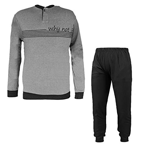CAGI Pigiama Uomo Serafino Lungo in Caldo Cotone Art. 4244 (3, Grigio)