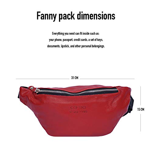 CAGIA Marsupio in vera pelle per uomo e donna - Cinturino regolabile con 2 tasche con cerniera Marsupio per attività all'aperto - Marsupio per viaggi, ciclismo, shopping, escursionismo - Rosso