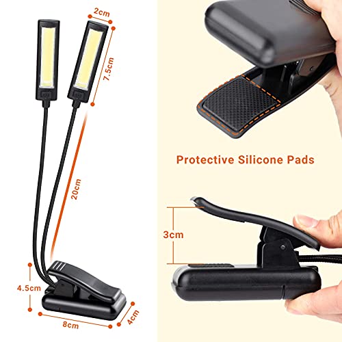 CAHAYA Lampada per Lettura con Pinza Dual Head Luci per Leggio Musicale con 32 LED Luminoso Luce a Clip Portabile con 3 Intensità di Luminosità Cavo di Ricarica 2.5m Modello CY0243