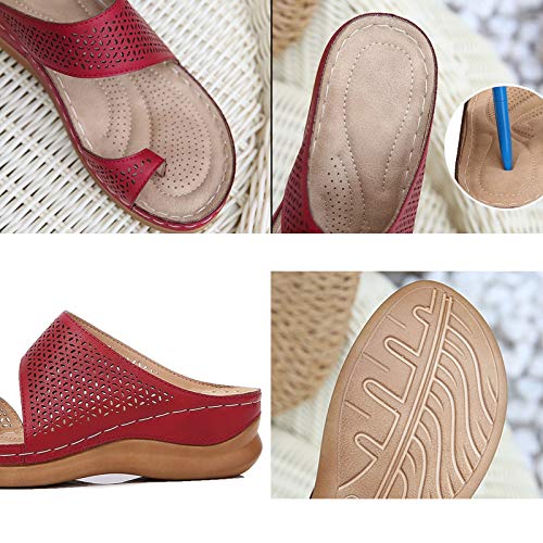 CAICAIL Scarpe da Donna Sandali con Zeppa Cava retrò, Pantofole Morbide in Pelle PU Casual Sandali Ortopedici con Stecca per Alluce Valgo Infradito,1,39