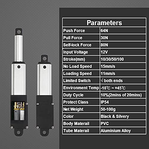 Caihv-Attuatori di Movimento lineare DC 12V 15mm / s 64N 10 30 50 100 mm, Mini attuatore lineare, Micro spintore Elettrico progressivo Robusto (Speed(RPM): 50mm Stroke, Voltage(V): Package A)