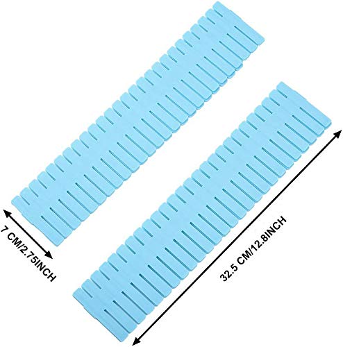 CAILI 12 Pezzi Regolabile Griglia Cassetto Divisori Fai da Te per Cassetti in Plastica Separatori Organizzatore Contenitore per Biancheria Intima Calzini Cintura Ufficio(Blu) (12,8 * 2,75 Pollici)