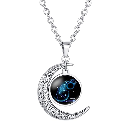 Caimeytie Collana da Donna Pendente della Luna Costellazione Segni dello Zodiaco Charm in Vetro Trasparente Acquario