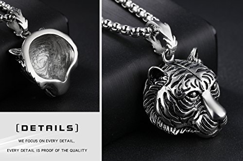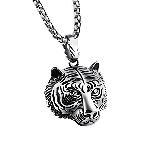 Caimeytie - Collana lunga da uomo, con ciondolo a forma di tigre grande, in acciaio INOX, 60 cm, regalo per uomo e Acciaio inossidabile, colore: Originale, cod. XNE-034-S